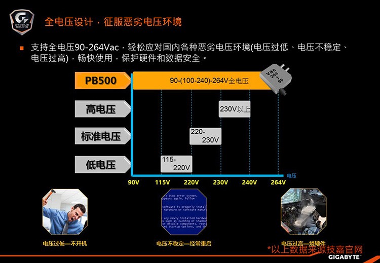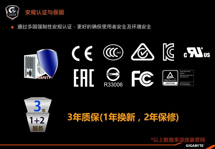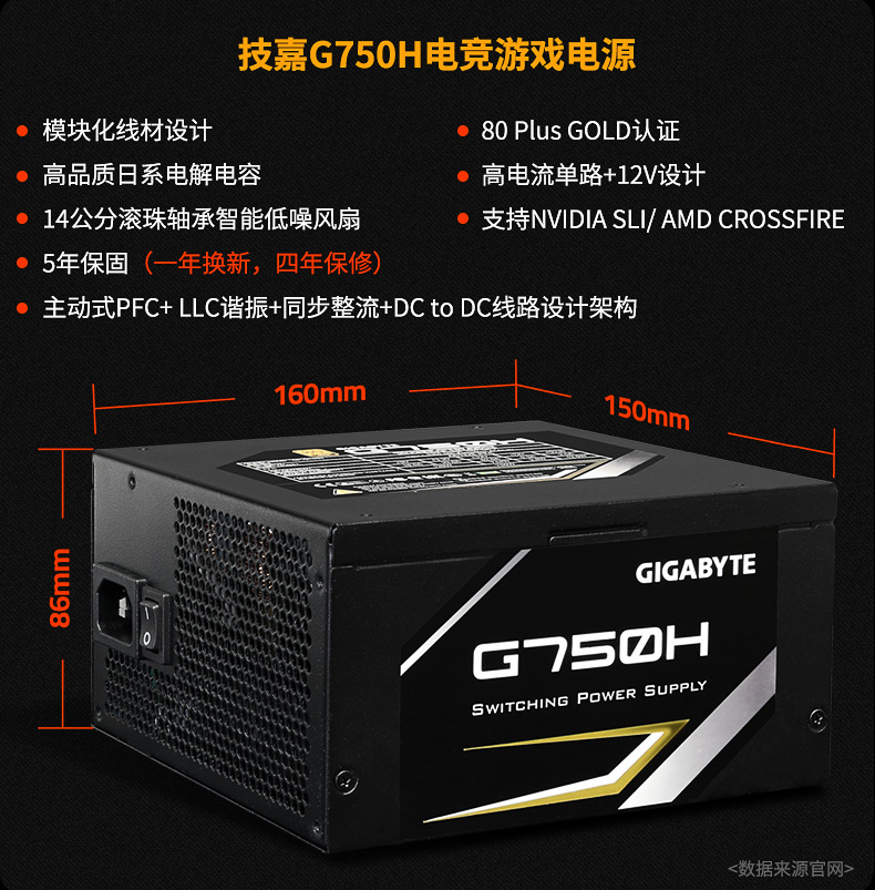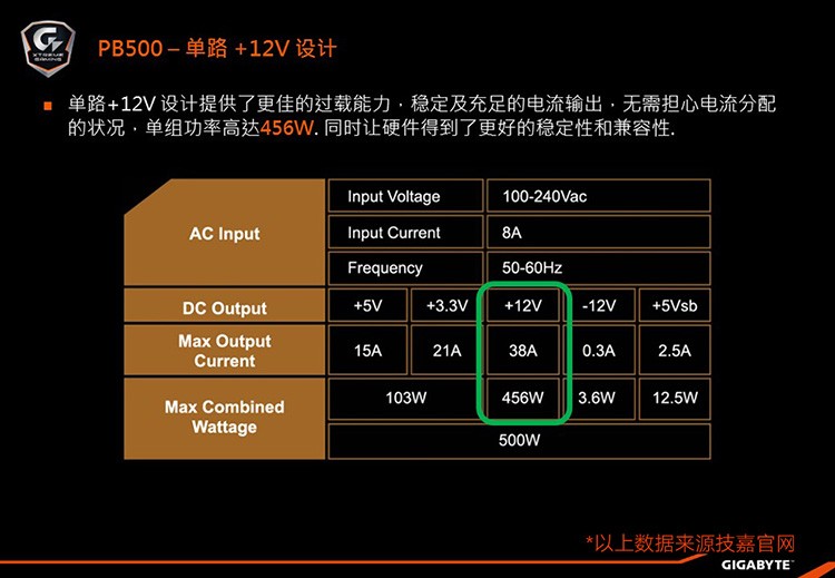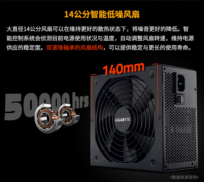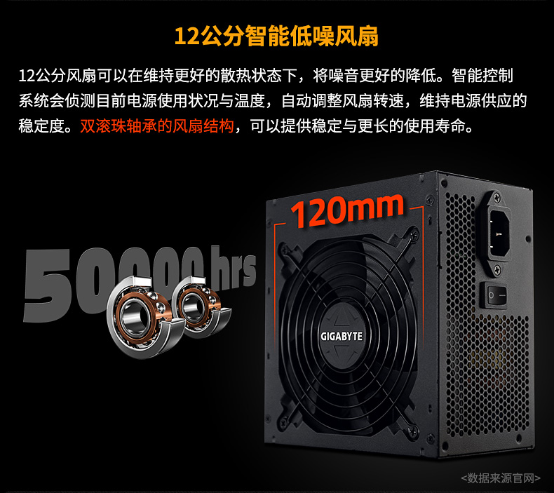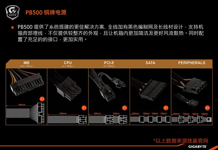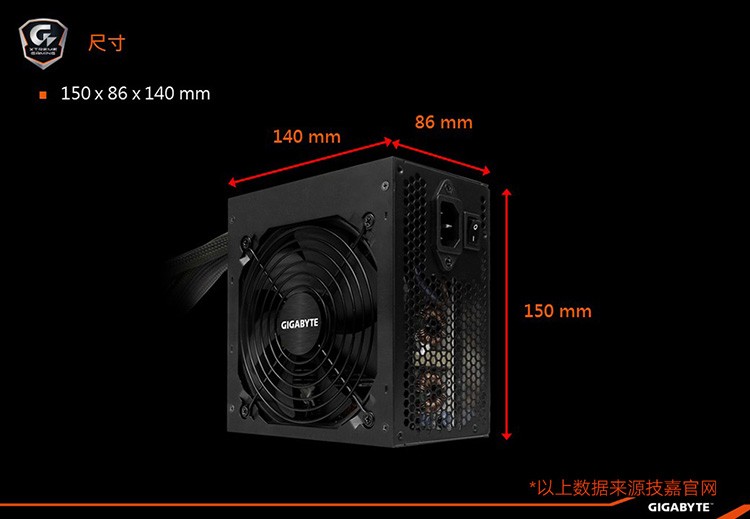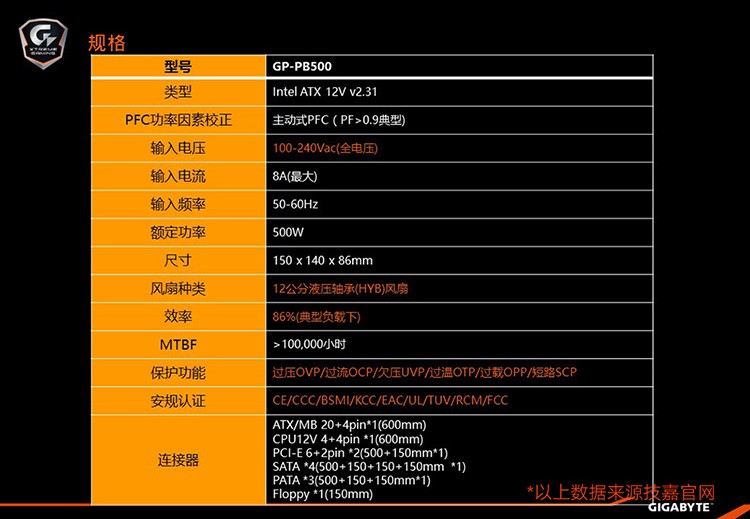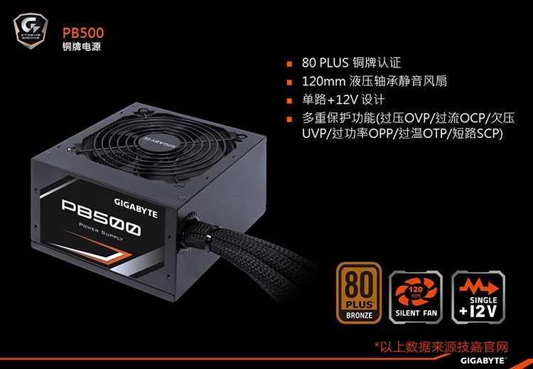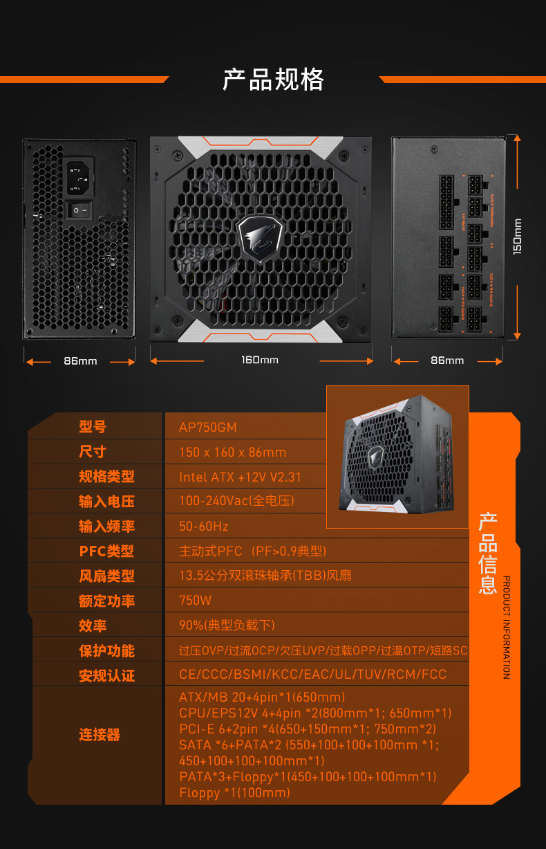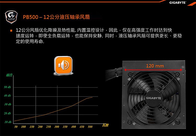 商品名称:技嘉 400W/500W/650W/750W/850W 静音低噪铜牌/金牌额定AORUS系列台式电源 GP-PB500 500W电源