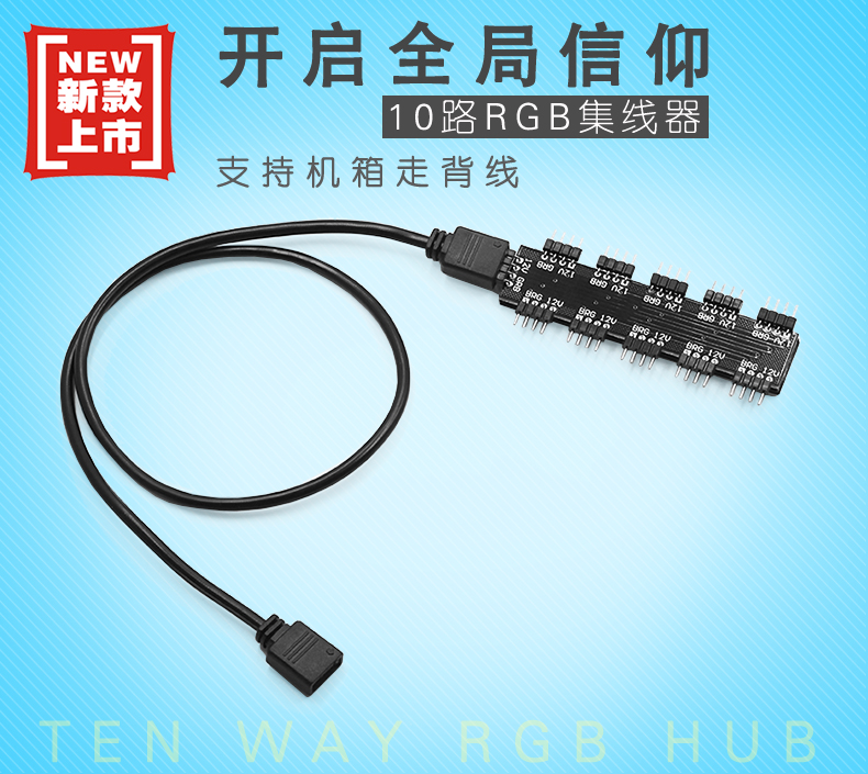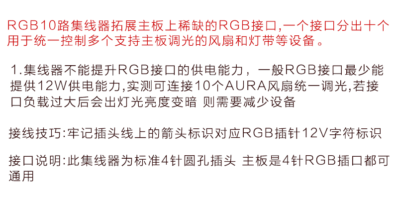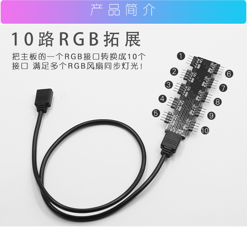 商品名称:宝璋 主板RGB集线器 1分10分线器 华硕 微星 技嘉AURA神光同步RGB风扇扩展机箱灯条集线器 12V 4针+30cm延长线